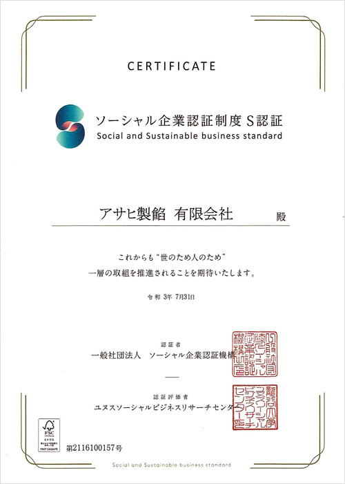 | 所属団体 | 一般社団法人ソーシャル企業認証機構 ソーシャル企業認証制度S認証 企業 |